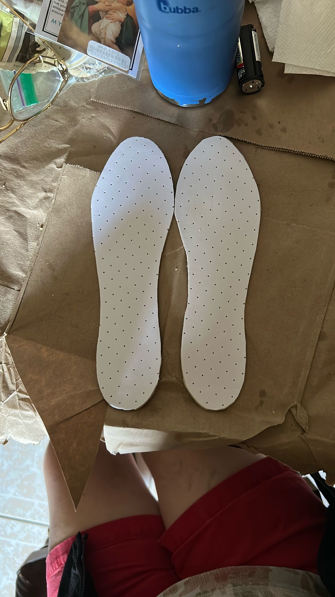 Never used but already precut cushioned insoles that are for sizes 5-7. Satin top material. Great price to save you dollars!