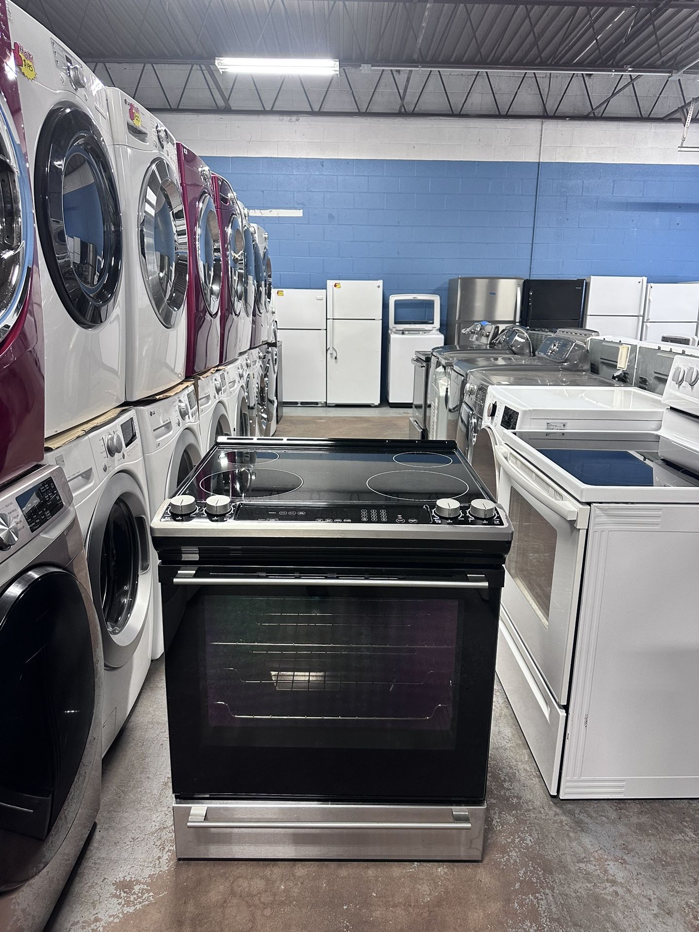 Whirlpool) Electric stove, working perfectly, very clean, and backed by a warranty. All our appliances are delivered in working condition. We're located at 757 Goodwin St, East Hartford, CT 06108.