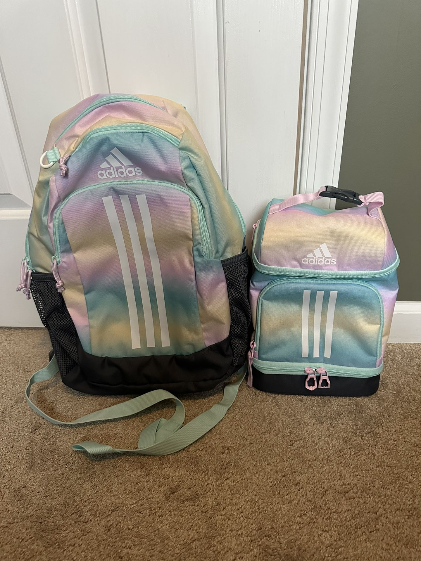 Adidas backpack and matching lunch box. No tags but never used. Smoke free home. Porch pick up Elizabethtown.