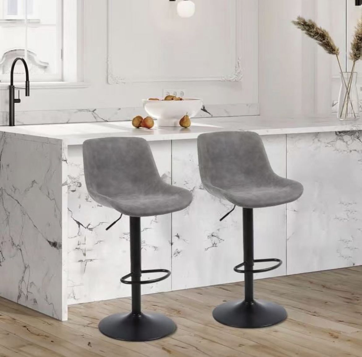 3PCS Bar Stools, Swivel Counter Height Barstools with Back, Adjustable Modern Bar Chairs, Tall Armless PU Leather Kitchen Island Stool (Grey, Set of 3)