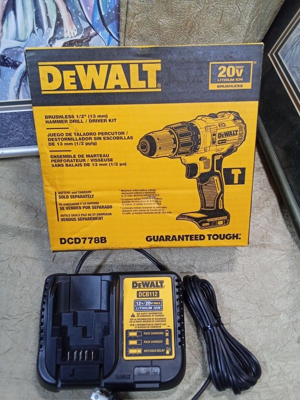 NEW DEWALT 20V BRUSHLESS 1/2 HAMMER DRILL AND CHARGER