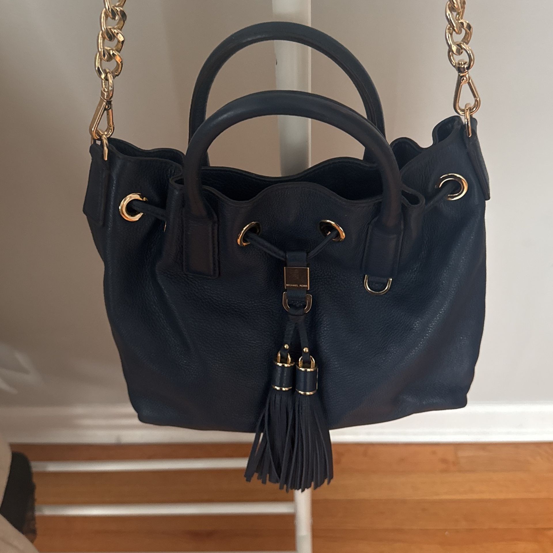 Navy Blue Leather Michael Kors Purse With Gold Chain