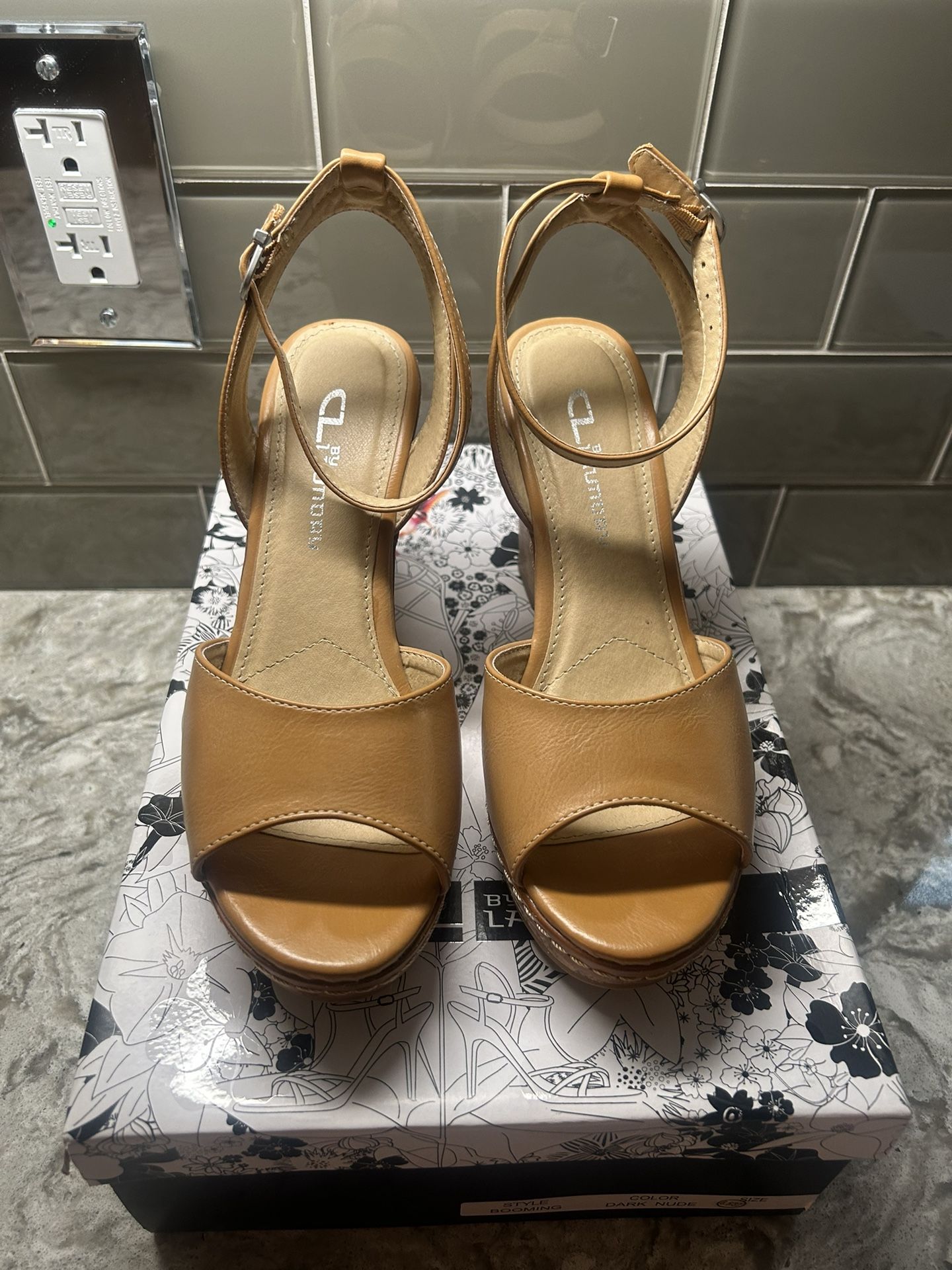 Brand: CL by Laundry Color: Dark Nude Heel: 3 1/2” Wedge (cork) In line-new, excellent condition!