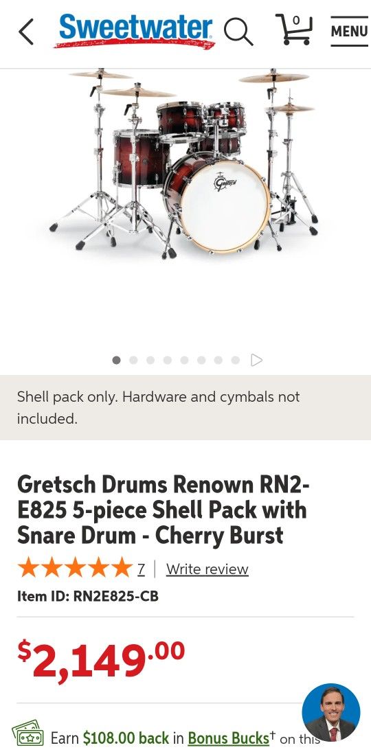 Gretsch Renown Maple Shell pack 10, 12 toms 16 floor with legs 14 snare 22 bass with tom mount In New condition Never played