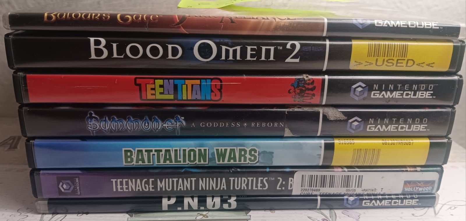 1. Baldur’s Gate: Dark Alliance — $40 2. Battalion Wars — $30 3. Blood Omen 2 — $40 4. P.N.03 — $35 5. Summoner: A Goddess Reborn — $30 6. Teenage Mutant Ninja Turtles 2: Battle Nexus — $30 7. Teen Titans — $30 Buy individual games or entire lot GameCube Titles Local pickup Cash only