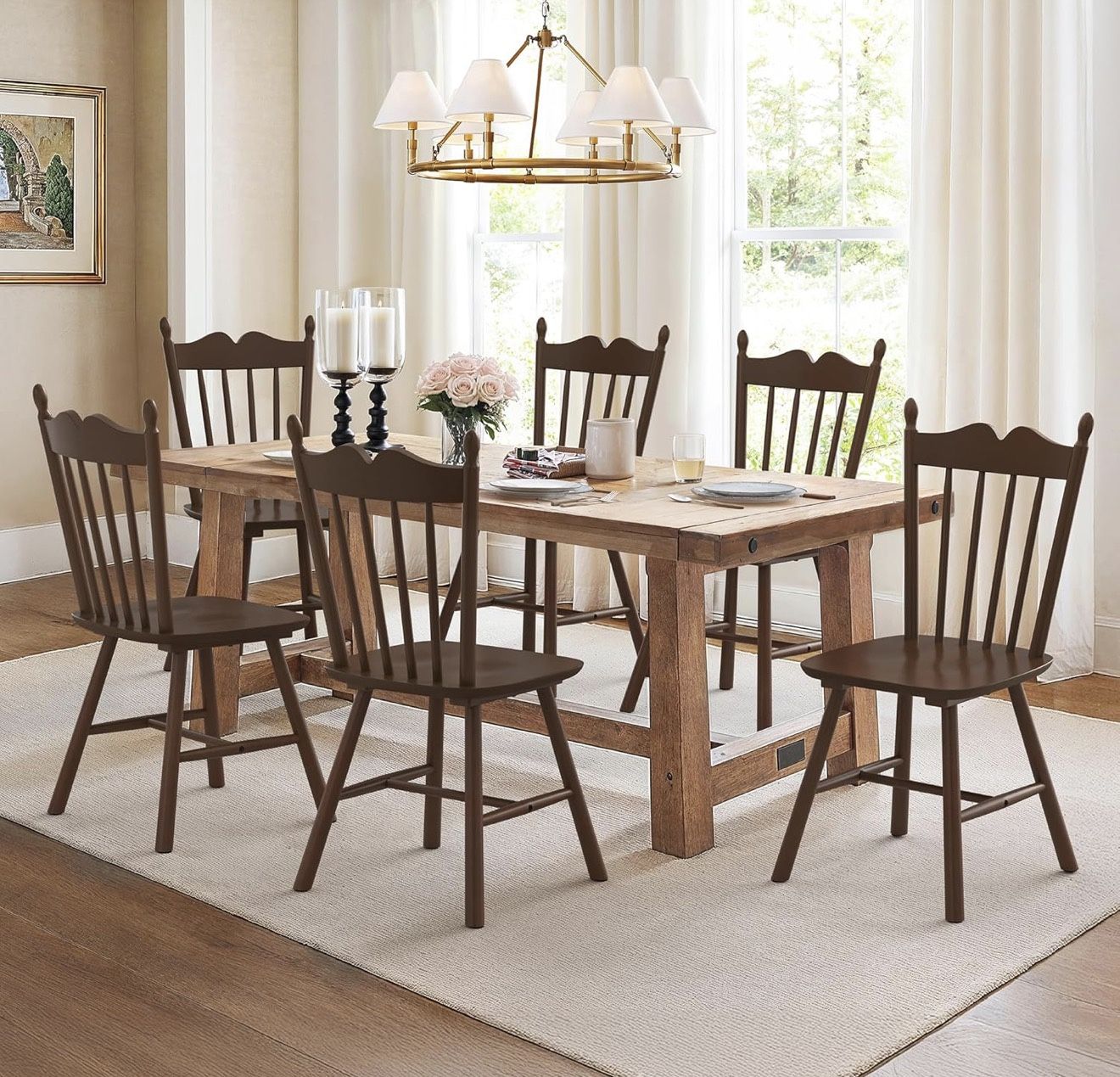 LUE BONA Wooden Dining Chairs Set of 6, Windsor Dining Chair with Thickened Backrest, Morden and Mid Century Kitchen Chairs for Dining Room Farmhouse,