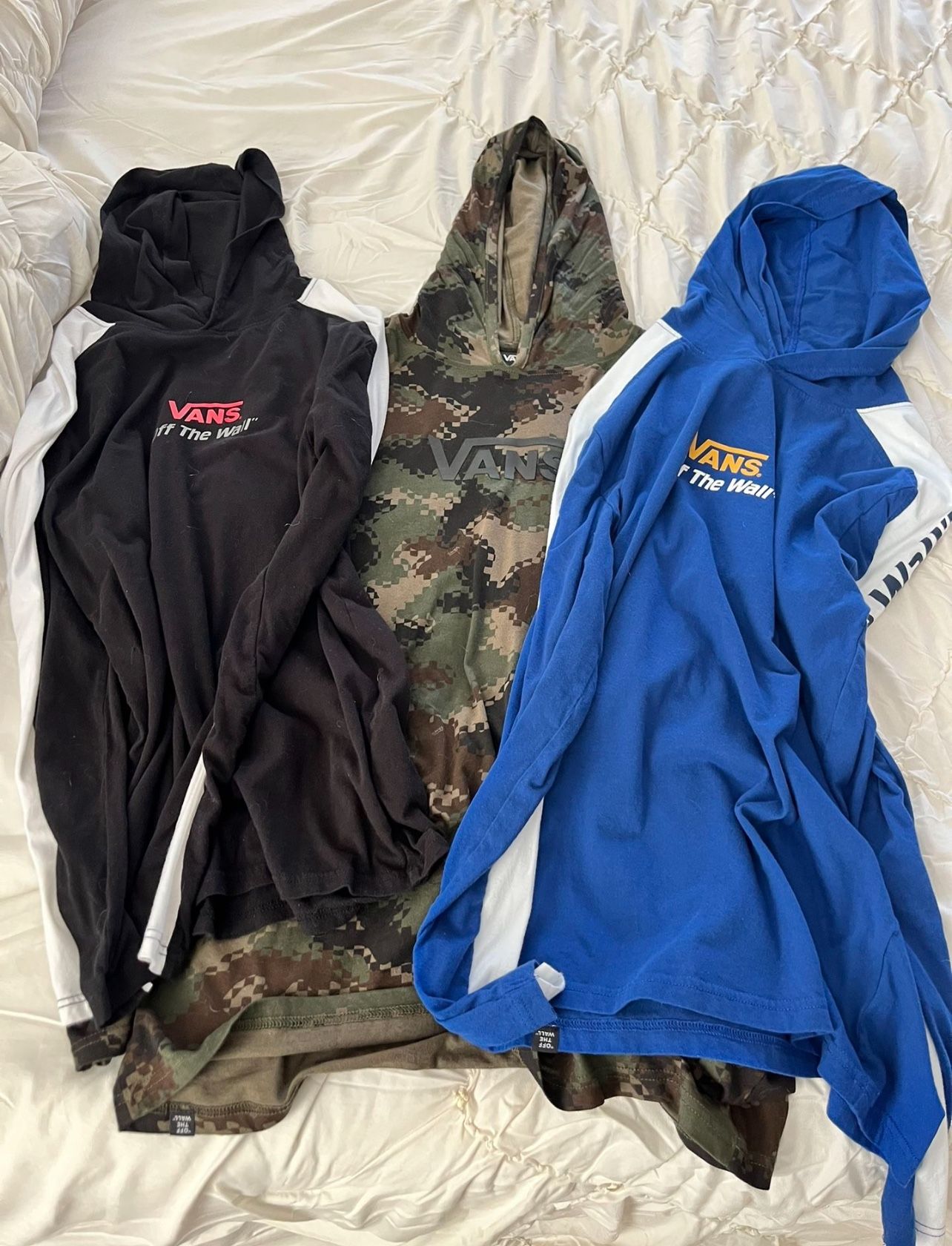 Three. Vans Long sleeve size medium shirts and one Armani long black long sleeve shirt, button button up size small use very good condition