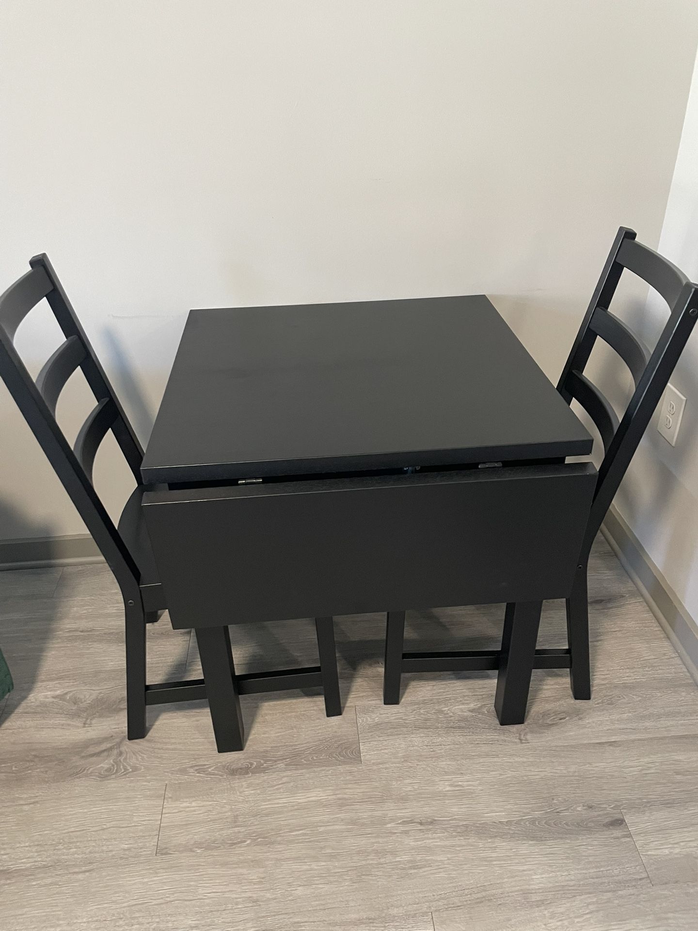IKEA Small extendable dining table and two chairs. EXCELLENT flawless condition. MUST GO ASAP. Moving . Cash or Venmo only. Pick up only in downtown Decatur.