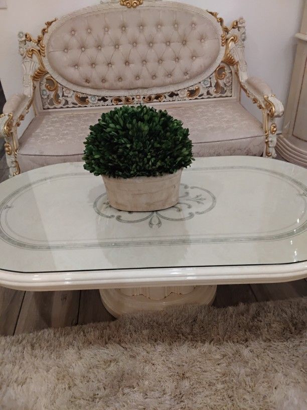 1 coffee table and 2 end tables 2 lamp shades No scratches no cracks Lamps work All in good condition