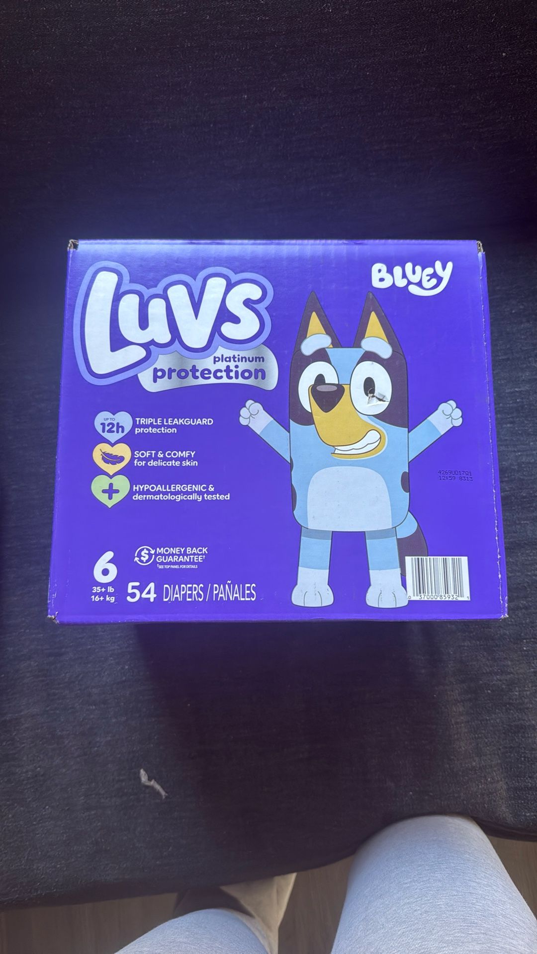 I have 2 boxes of Luvs size 6 54ct for $14 each. Price is FIRM Pickup only Serious inquiries only pls If post is up they are available