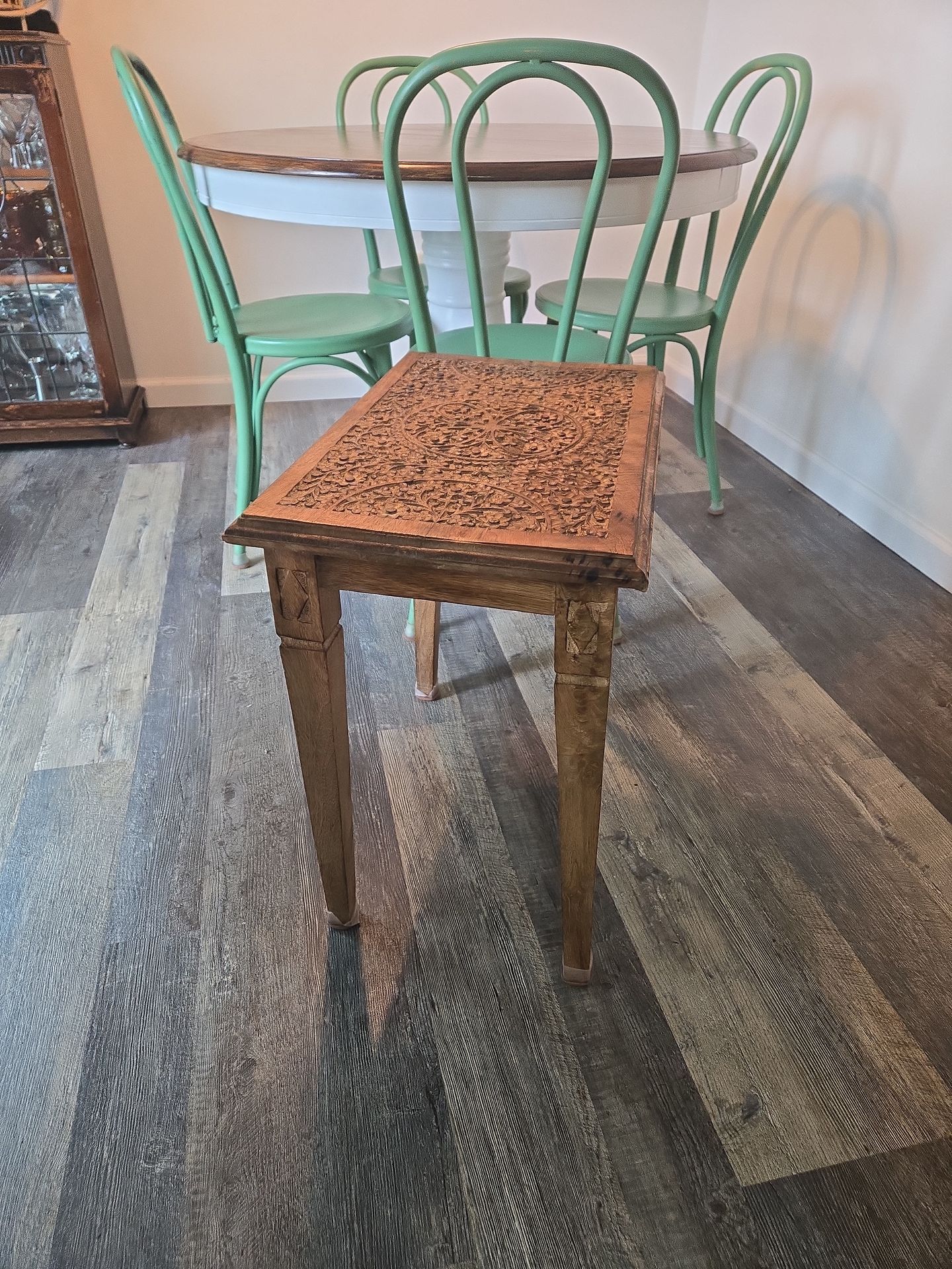 Cute floral carved end table or side table/Plant stand.