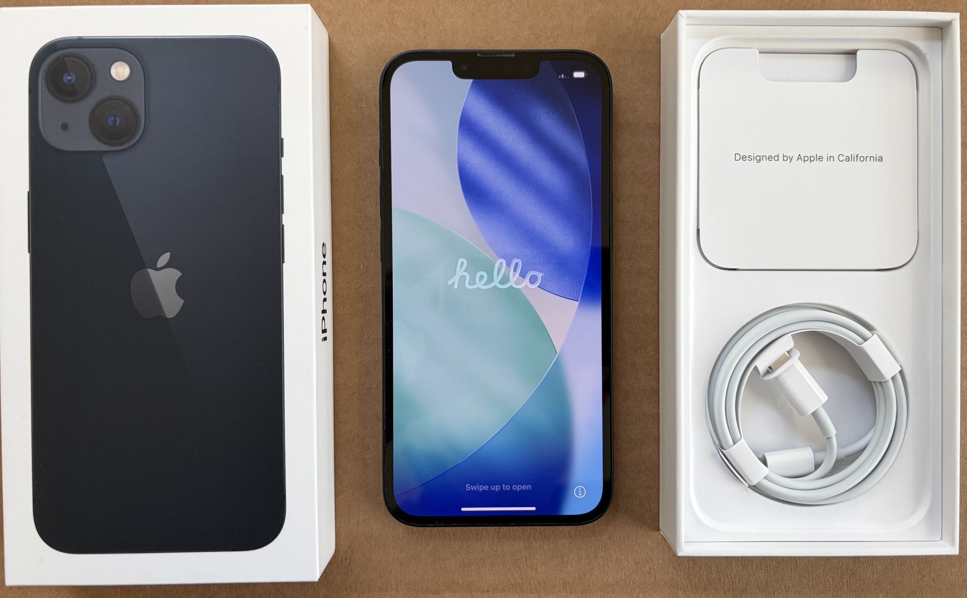 iPhone 13 – 128GB Midnight – Unlocked + Box, Cable & Screen Protector