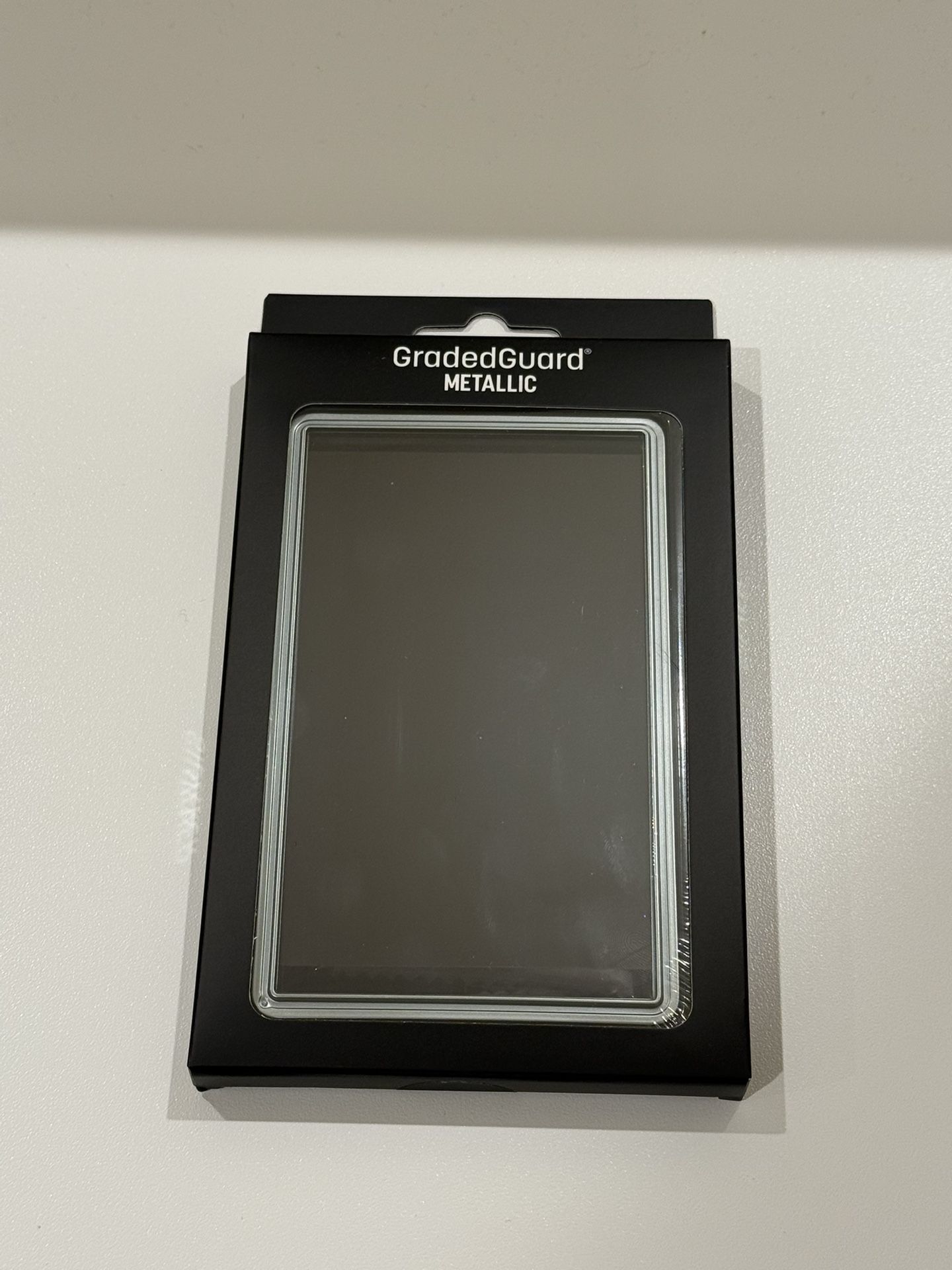 GradedGuard METALLIC SILVER BRAND NEW NEVER OPENED Made for standard PSA case FEATURES Metallic finish, clear backing piece, solid structure Stacks and locks into other GradedGuard cases Absorbs impacts and prevents cracks