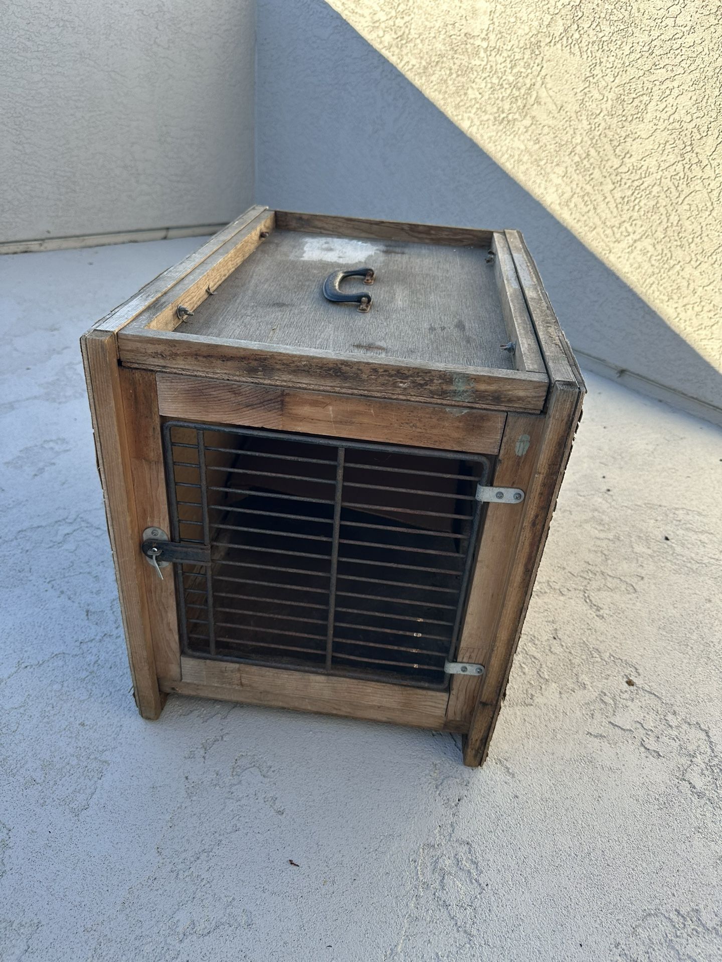 Good condition animal transporter cage 22.5” deep 16” wide 19” high Wooden cage