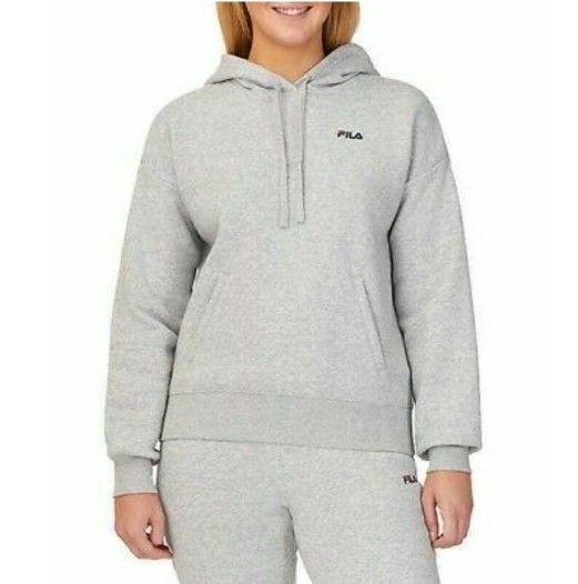 CoralGray fila women hoodie and matching sweat pants. Fila hoodie front kangaroo pocketsDirect embroidered FILA® logo on wearer’s left chestTonal flat drawcord at hoodRib cuffs and bottom waist bandSoft br