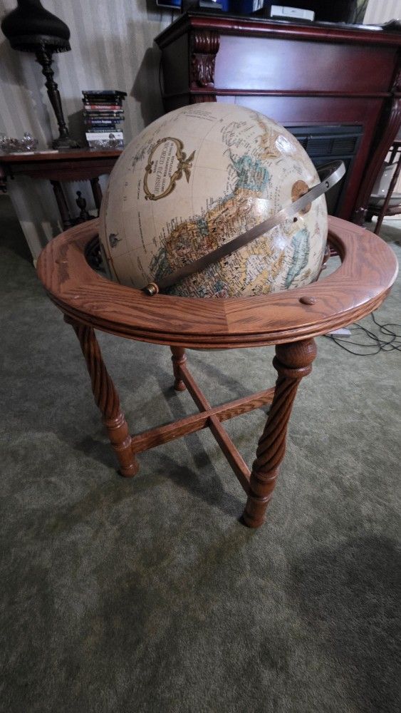 A nice floor globe. The north pole section is disconnected as shown in pictures. Otherwise clean. $50 Thank You.