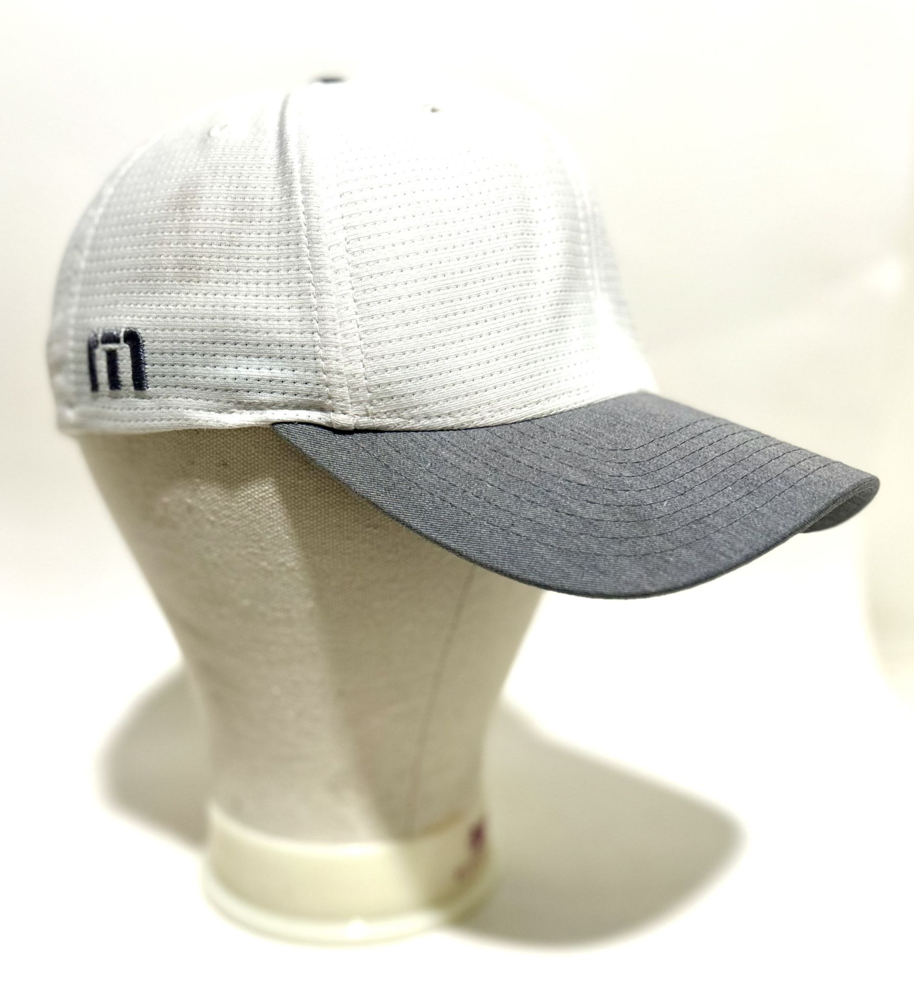 TravisMathew performance cap. The logo featured on the side panel is the brand's iconic "TM" emblem.