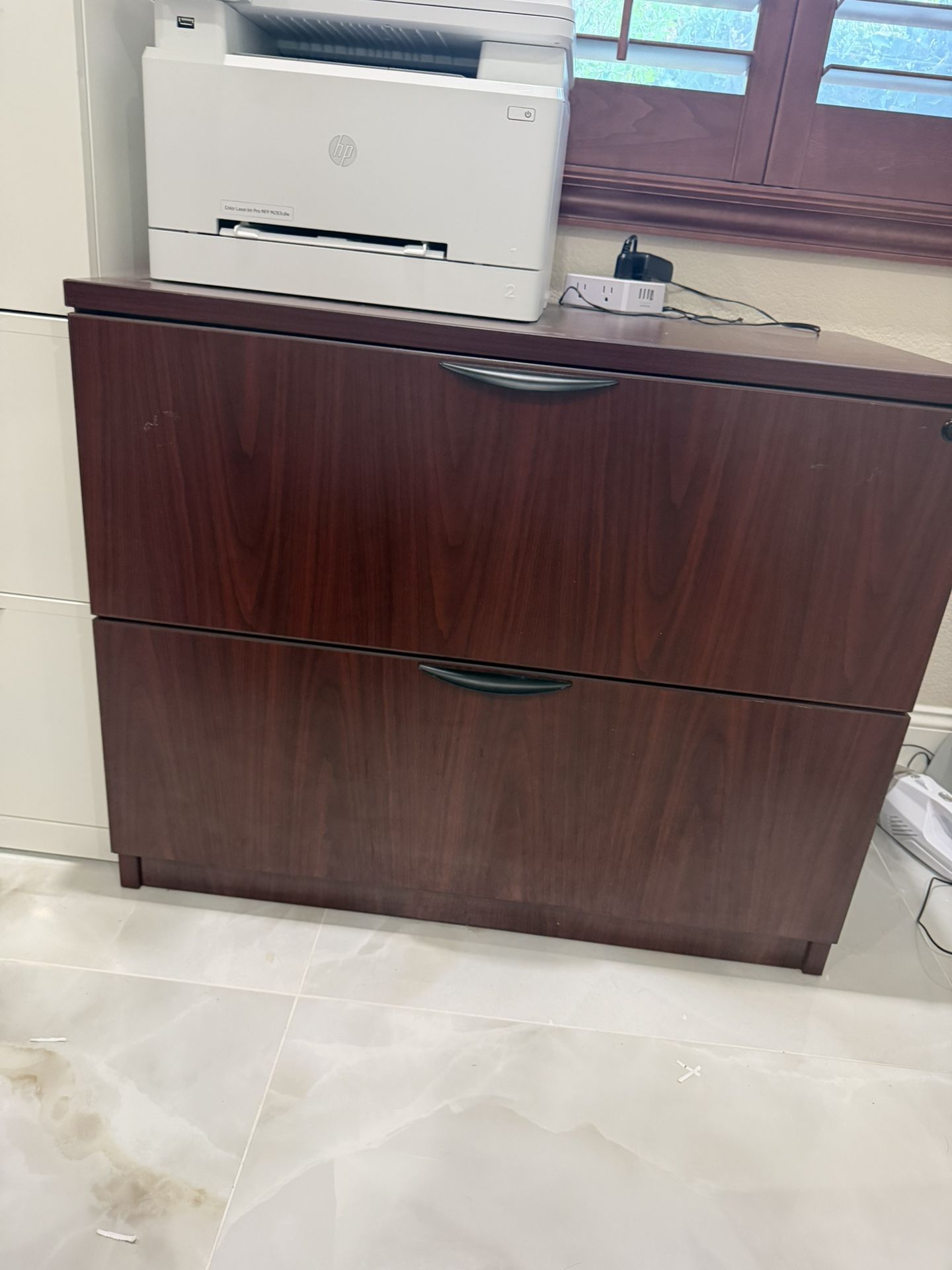 This is a mahogany-colored two drawer lateral file cabinet. It’s very heavy and sturdy. Holds letter size or legal size files. This sells new for $1000 on Amazon. Great for your home office or business. You must pick up. Measurements are 35.5 x 22 x 29 Location is in Centennial Hills. Serious buyers only. Please DM me with your phone number.