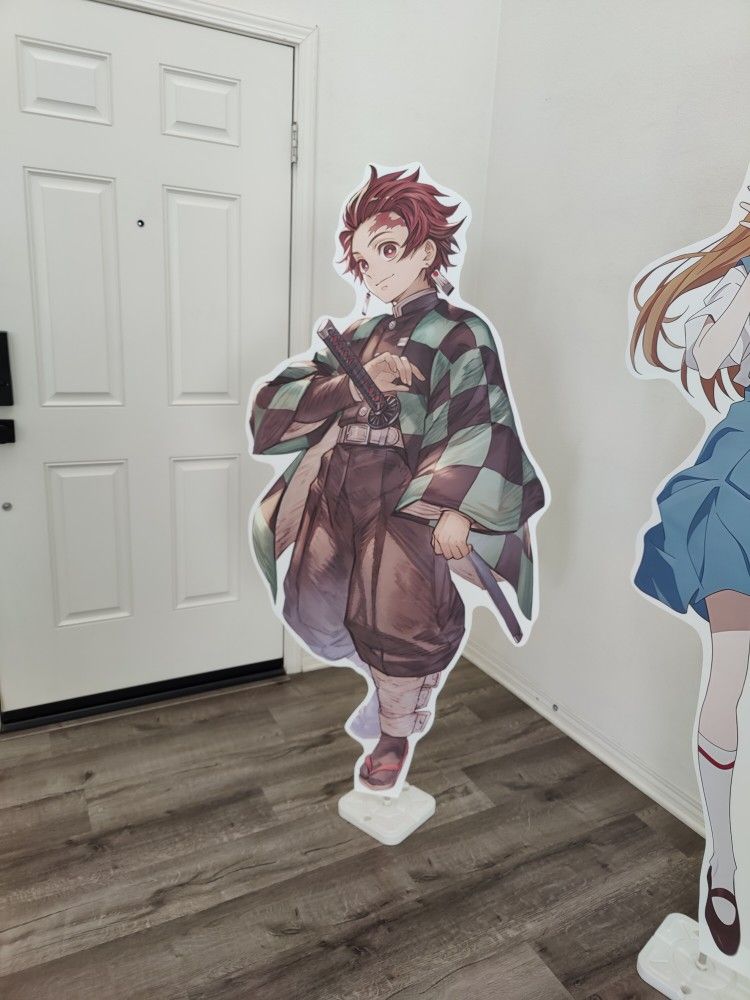Brand new character itself is 62" tall (64" with base) Comes with a water-fillable weighted base standee and the support frame are foldable This is a high quality, professional grade Tanjiro standee, NOT a cheap cardboard cutout.
