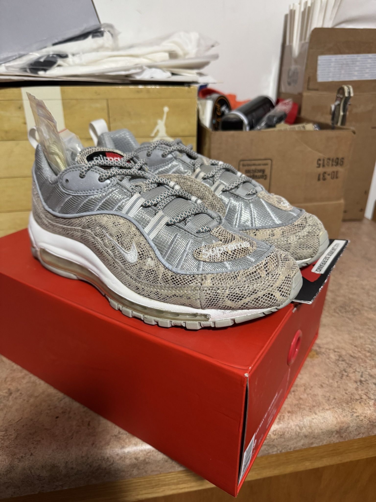 NIKE AIR MAX 98 x SUPREME SNAKESKIN Sz 9 EXCELLENT CONDITION 100% AUTHENTIC $275 PICK UP HARLEM & IRVING PARK CHICAGO NIKE JORDAN TRADES in Sz 8/8.5 DS