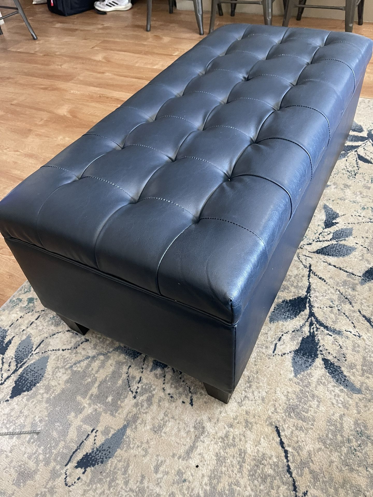 Navy Blue Leather Ottoman (L 39 x W 19 x H 16)
