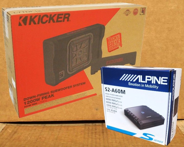Kicker Shallow L7 Solo-Baric 12" Dual Voice Coil Subwoofer L7T12 Bass System L7TDF12 Alpine S Series Mono Amplifier 1200 Watts S2-A60M Package