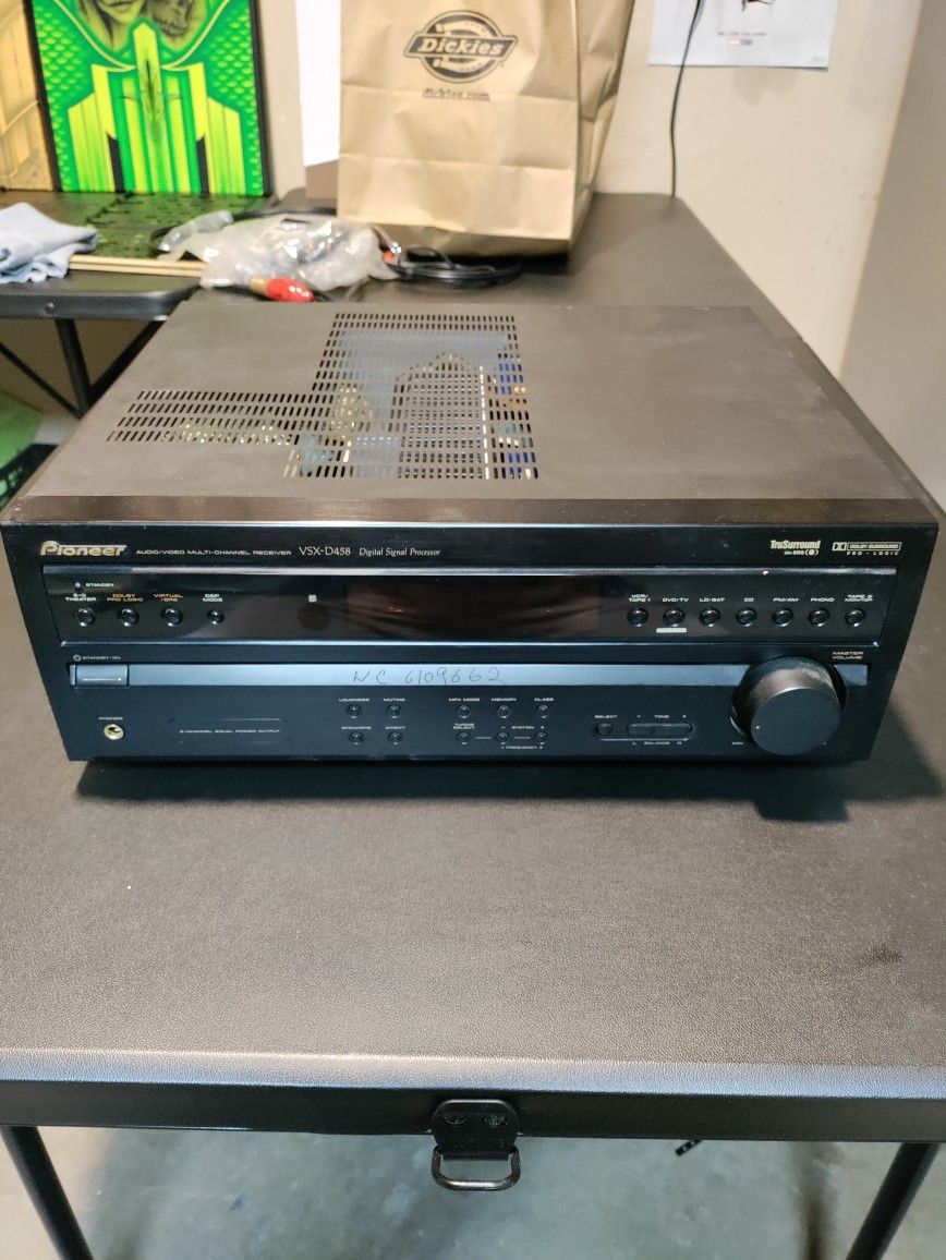 Pioneer VSX D458 5.1 Channel 500 Watt Receiver Surround sound The heart of any great home theater system is the receiver, and Pioneer has raised the ante for value, power, and performance for consumers with this product. Whether it's simply great music you want, or the explosive sound track of an intense flick, Pioneer VSX-D458 A/V receiver has the power and processing to make every home entertainment experience real. OBO