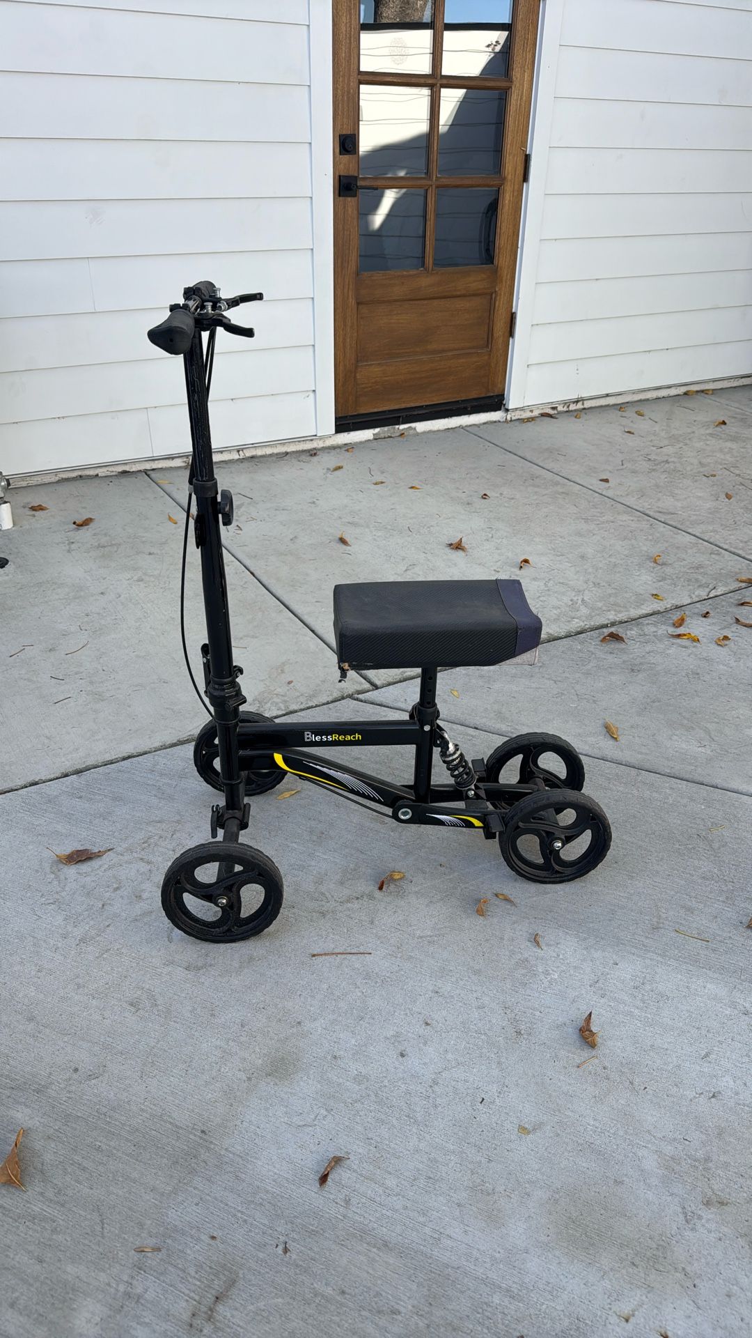 This knee scooter is in good working condition. Ideal for anyone recovering from foot, ankle, or lower leg injuries. Features a padded knee rest for comfort, adjustable handlebars, rear shock, suspension, and a lightweight foldable frame for easy transport and storage. Much more comfortable and stable than crutches. Pick up in Long Beach. $95