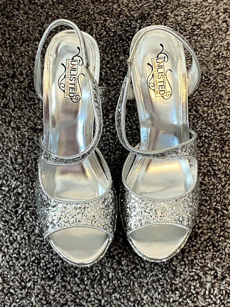 Silver strap heels. Never worn. Size 8.5 M