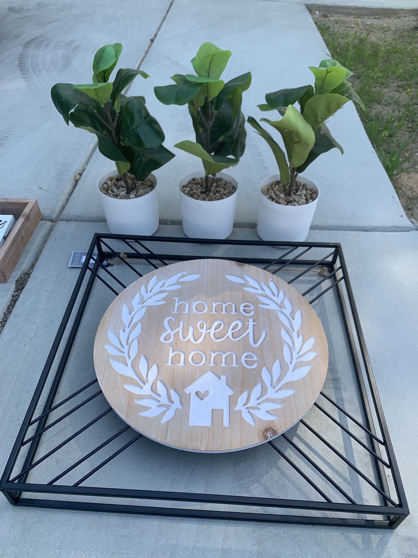 Brand new Selling as bundle of 4 1 PC Home sweet home sign Size: 15.75” x 15.75” 3 PCs potted plants Size: 12” tall