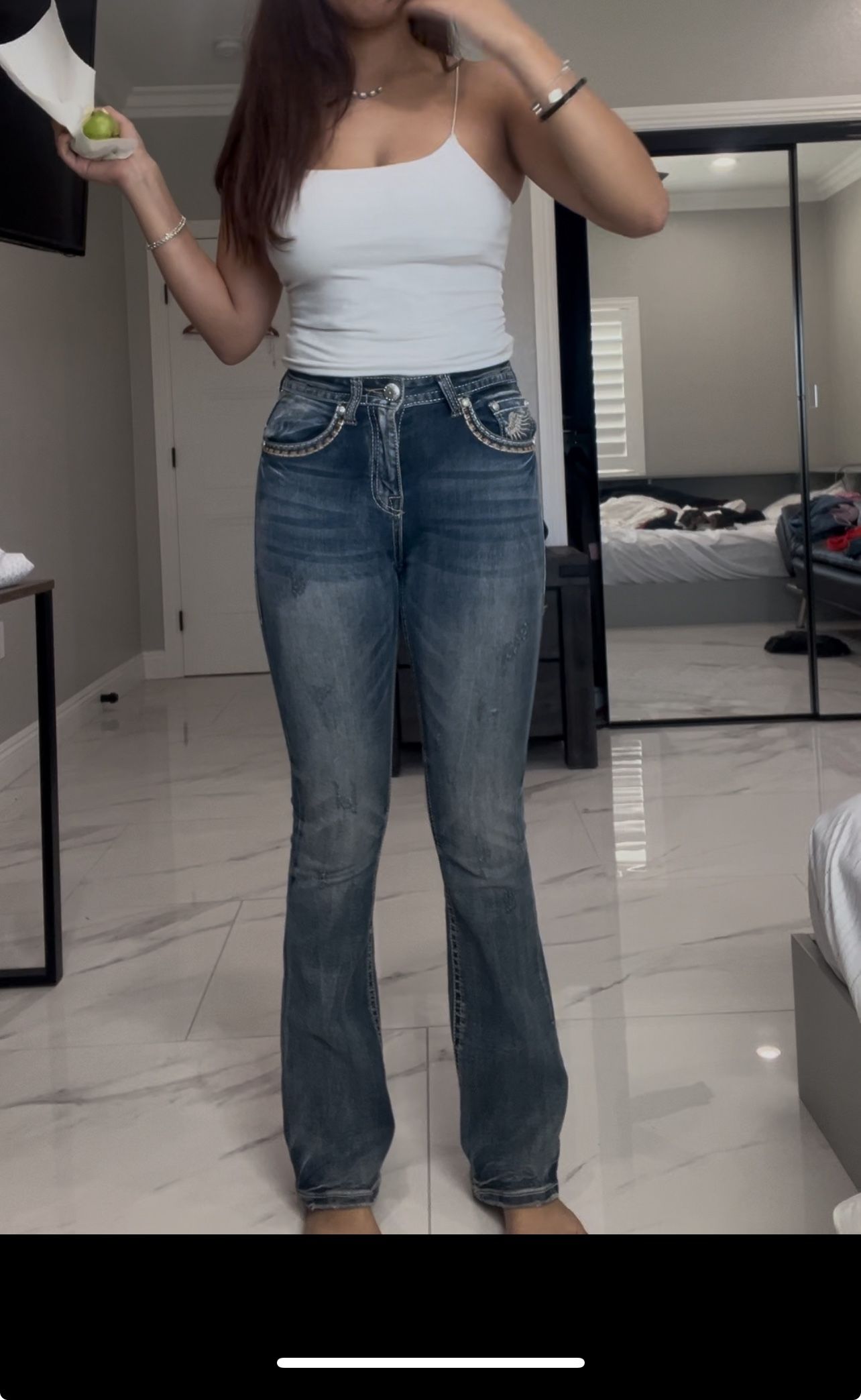 Brand - sexy couture Size- 3 Model height- 5’6 Weight- 135 Retail price- around $100 Diamond butt pockets *rarely worn and in great condition*