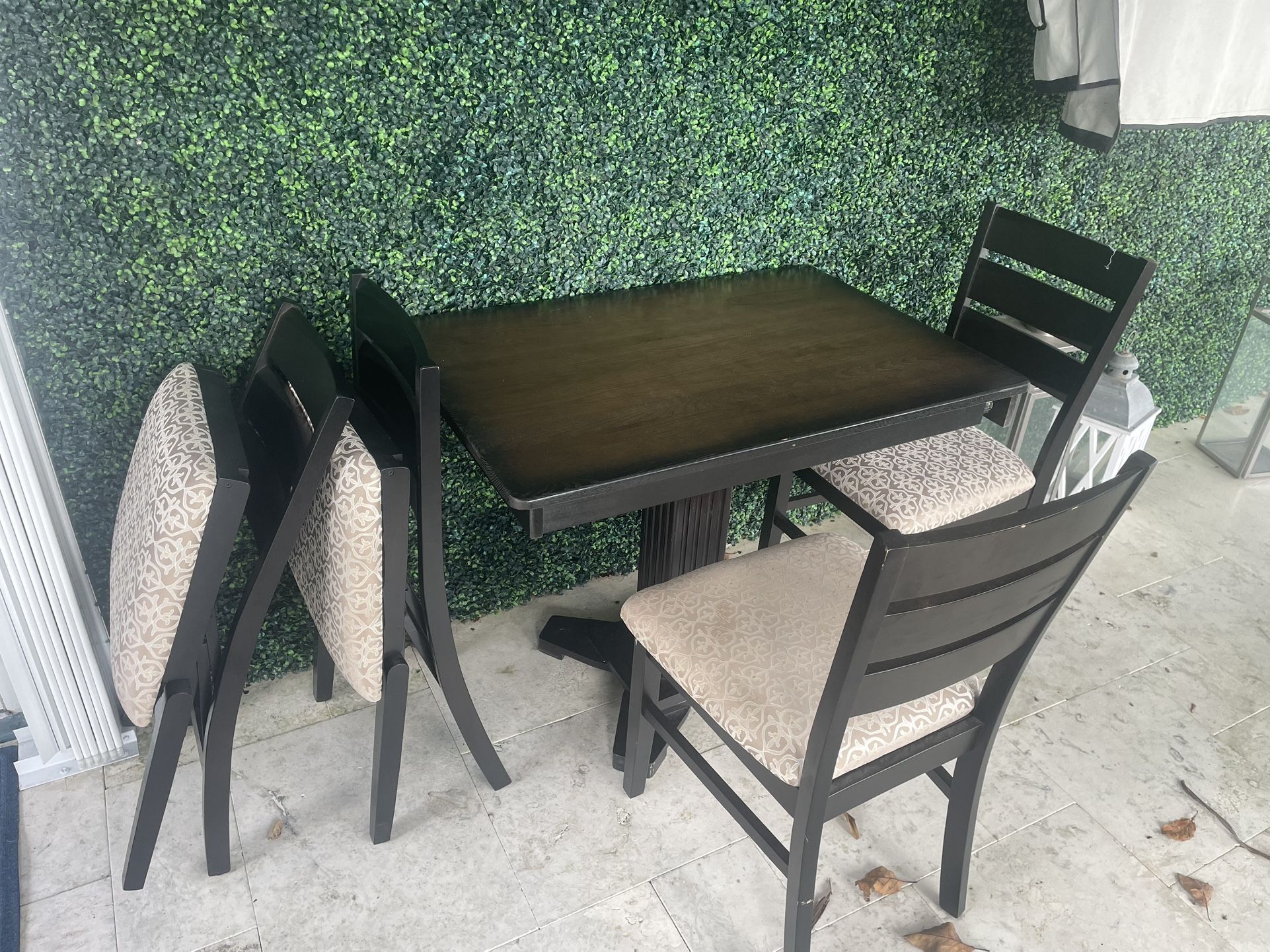 Small wood RV dinning room table with storage. 2 regular chairs with storage and 2 folding chairs. Also for small dinning area $150.00 or best offer….