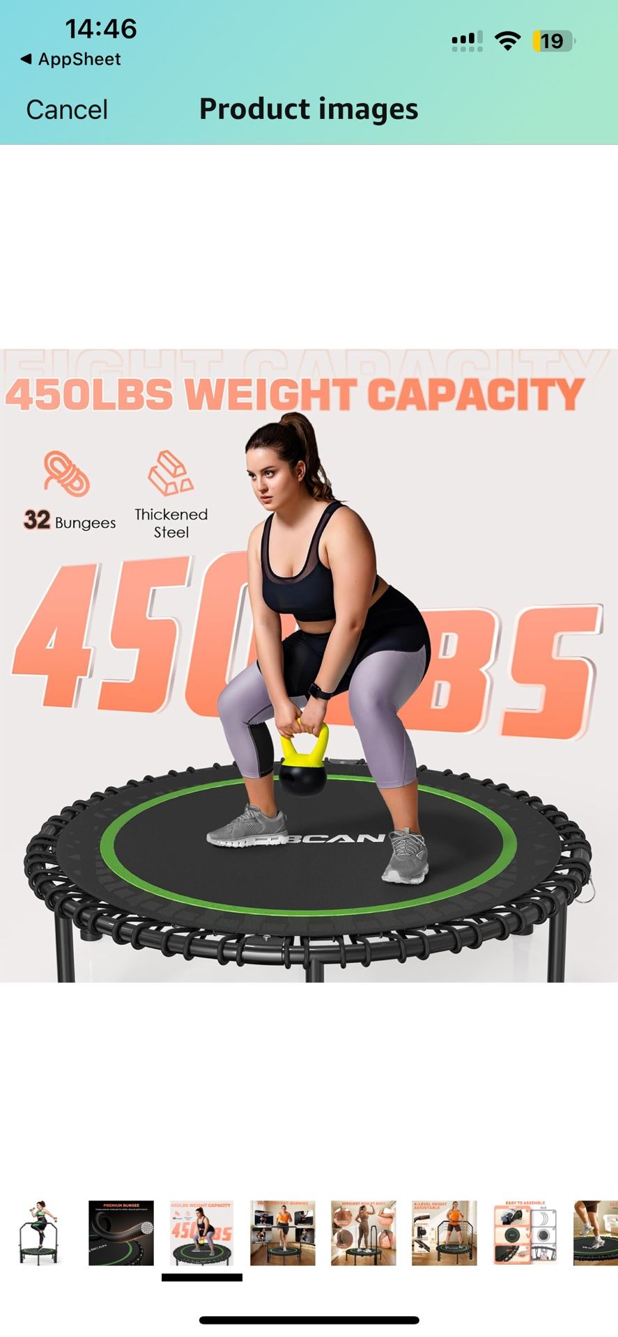 BCAN 450/550 LBS Foldable Mini Trampoline, 40"/48" Adult Fitness Trampoline with Bungees, U Shape Adjustable Foam Handle, Stable & Quiet Exercise Rebo