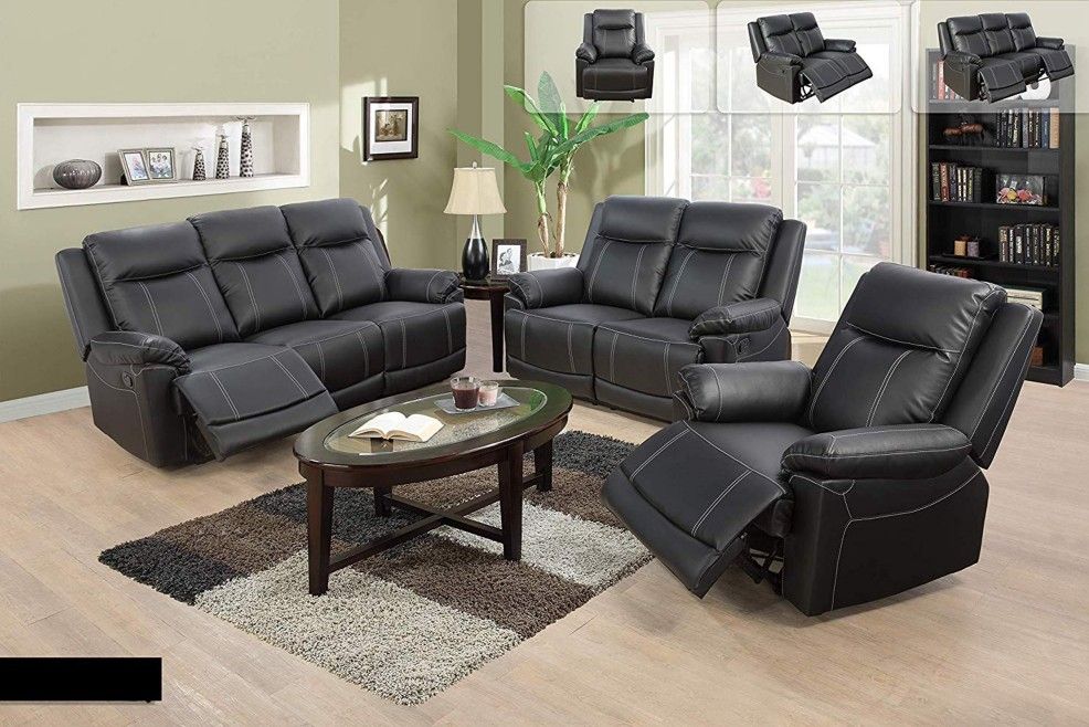 Brand New Black Leather Baseball Stitched Reclining Sofa Loveseat & Chair