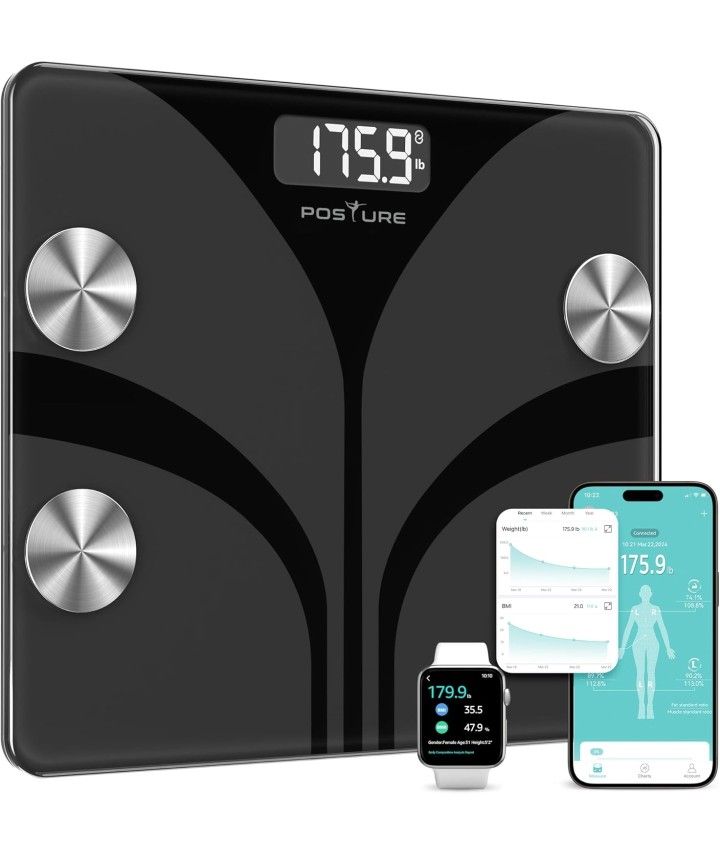 Posture Scale for Body Weight, Digital Bathroom Smart Scale FSA HSA Eligible, 13 Body Composition Analyzer Sync Weight Scale BMI Health Monitor Sync Apps 400lbs - Black Size: 11.8*10.2