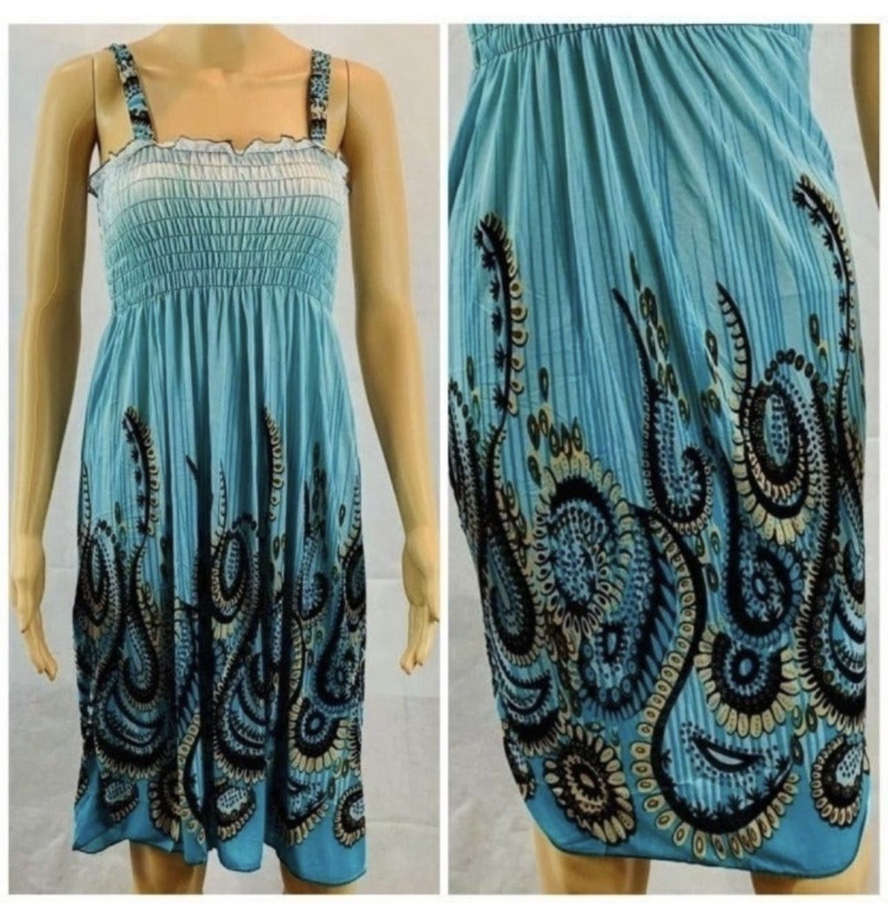 PRICE FIRM, pick up in Plainfield, IL or we can ship! Brand New Multi Lightweight Summer Dress Size Medium Measurements while lying flat: Length: 37” Bust: 13”-“18 Dress flares out under the bust and will accommodate any waist or hip size. Dress is very stretchy. SKU: 0091