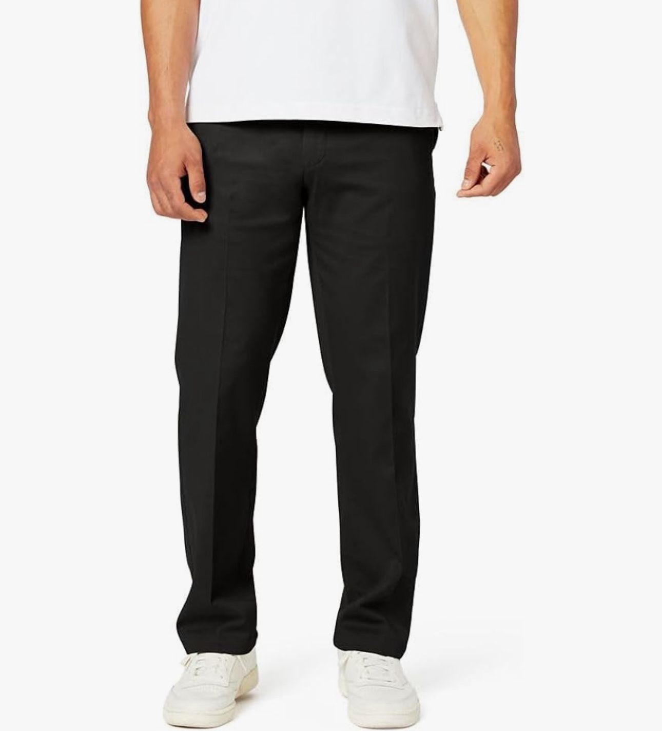 Dockers Men's Straight Fit Easy Khaki Pants 40 Waist/30 Length (Black) NWT It doesn't get easier than these khakis. Not only are they a total classic you can wear with anything - we added stretch to keep you looking and feeling good at all times. * Front Style: Flat Front * Features: Straight Fit Comfort Waistband * Closure Type: Zipper * Fit: Classic Fit * Pocket Types: 2 Side Slip Pocket(s) * Rise: At Waist * Fiber Content: 64% Cotton, 34% Polyester, 2% Elastane * Fabric Description: Twill * Inseam: 30 In * Leg Style: Straight Leg * Care: Machine Wash, Tumble Dry * Country of Origin: Imported Sleek black trousers by Dockers. Ideal for casual or formal settings.