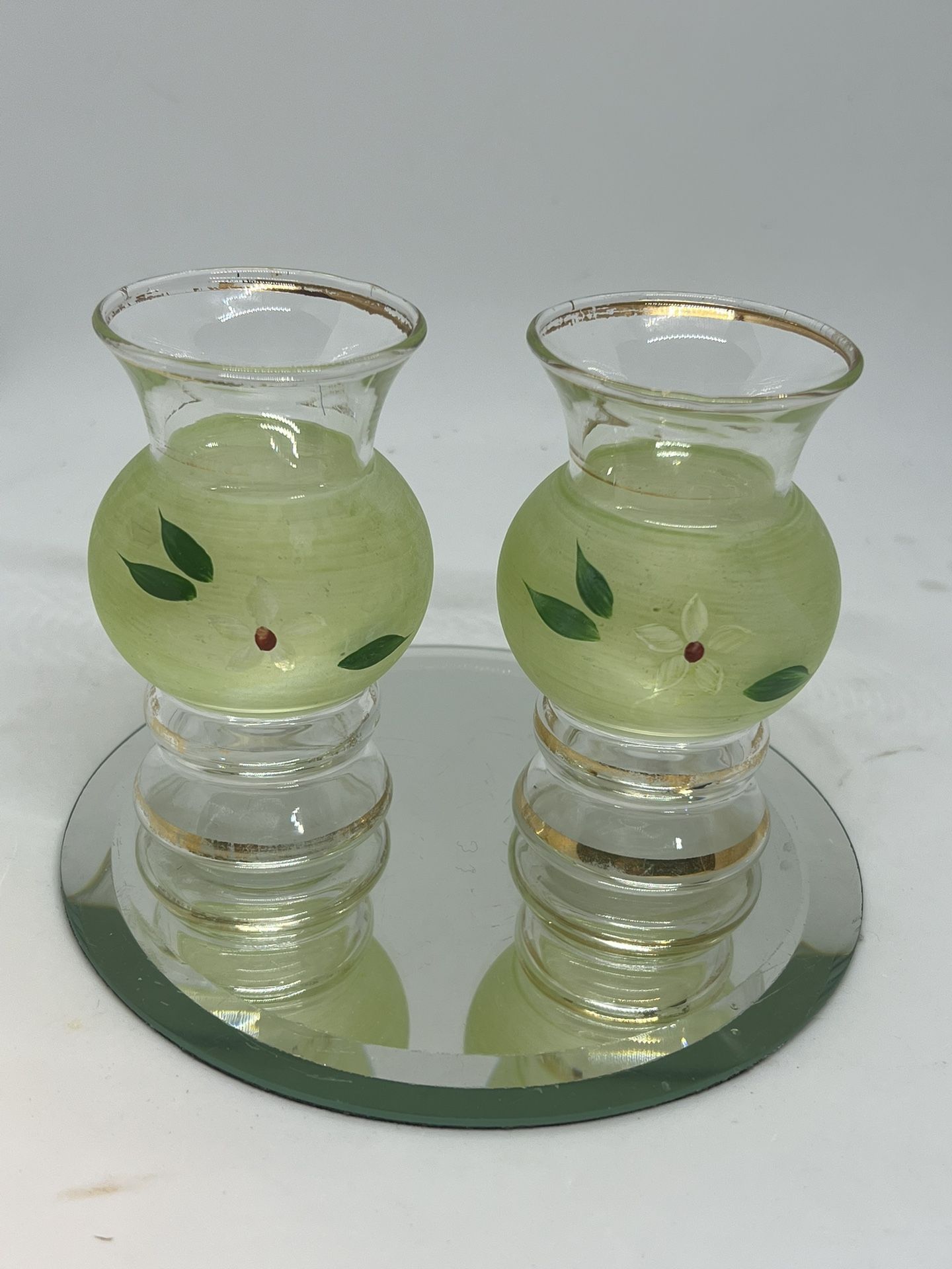VTG Set Of 2 Bartlett Collins Frosted Glass Vases, Hand-Painted Flower 1950s 4”
