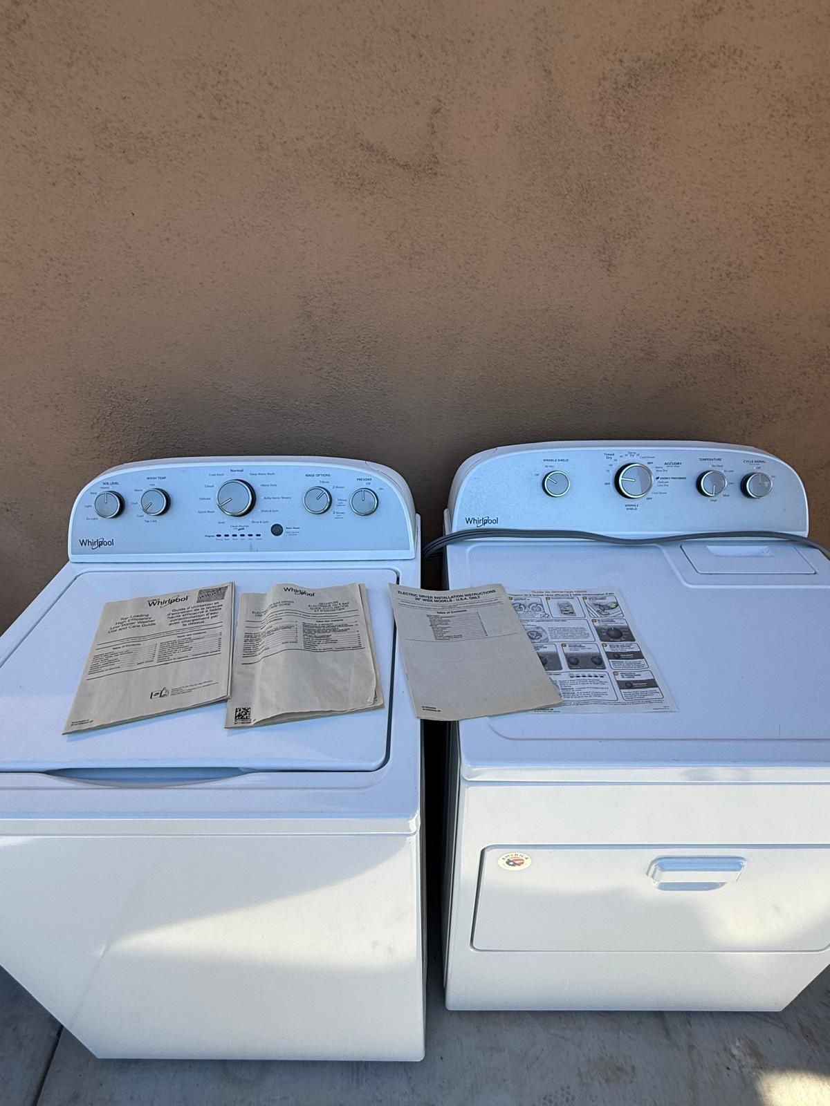 I’m selling this washer and dryer i had them as a extra set but i need to make room in garage because i will have company over this month . Pet free smoke free home They have a year sitting in the garage lastime i used them they worked perfectly fine , Also have the manual for them.