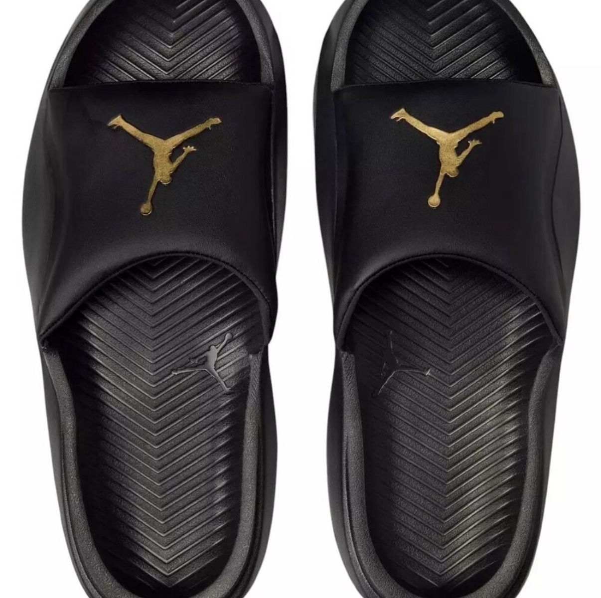 Made from robust yet flexible foam, these slides support your every step. A slight curve in the footbed helps keep the fit feeling secure. And with the Jumpman front and center, you can show off your Jordan pride. Benefits Synthetic leather forefoot strap helps hold your foot in place. Curved foam footbed feels soft and supportive. Foam outsole helps provide traction. Product Details Shown: Black/Metallic Gold Style: HF3263-007