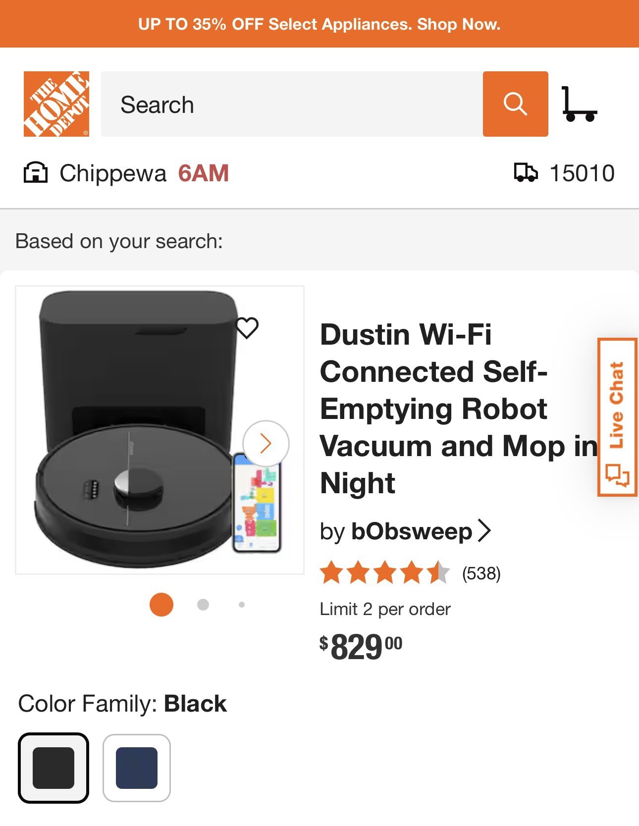 bObsweep Dustin Plus Robotic Vacuum Self-Emptying Mop Wi-Fi Black Night