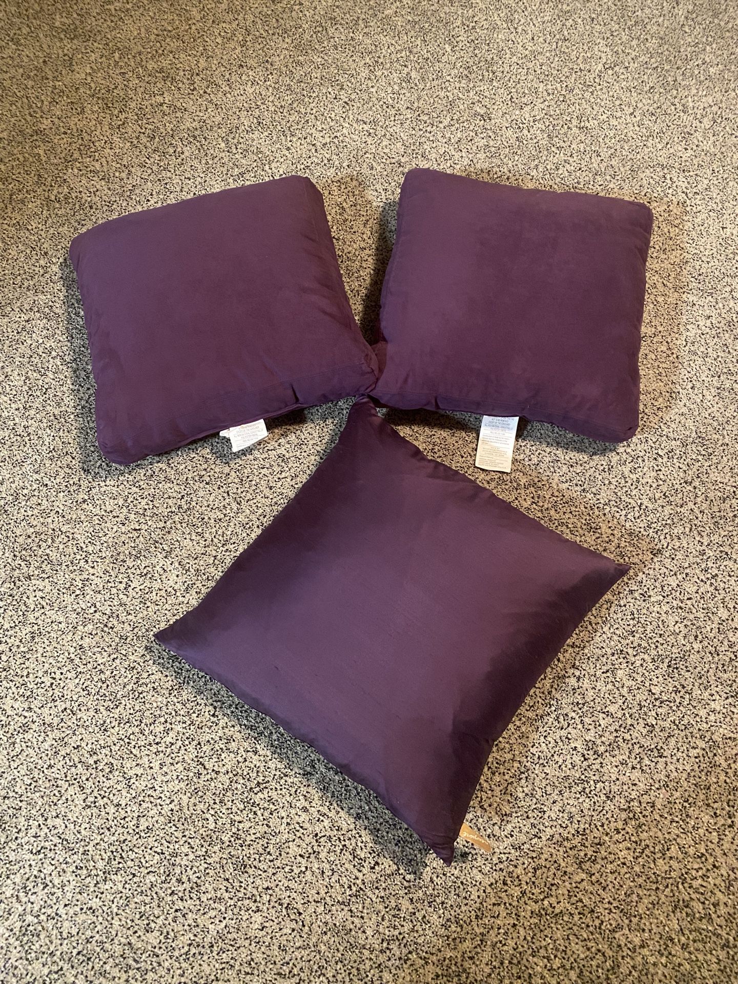 3 purple throw pillows on perfect condition. Only used for decoration $3 each