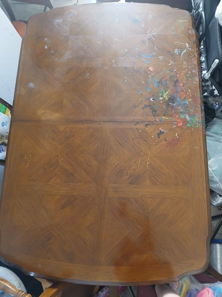 Selling it for $10....I allowed my child to paint once and it was a wrapped...anyways ways I need it gone, it located in DHS. Comes with 2 chairs...