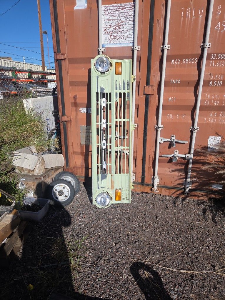 I am selling a 1970 Ford econoline front grill with headlights and turn signals. Its in really good shape for its age. Very little surface rust on the inside. All the Ford letters are there. Asking $250