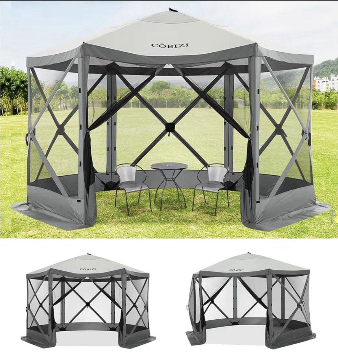 12x12ft Pop up Gazebo Screen Tent Screen House for Camping, Camping Outdoor Screened Gazebo with Mosquito Netting, Portable Hub Tent with Carrying Bag