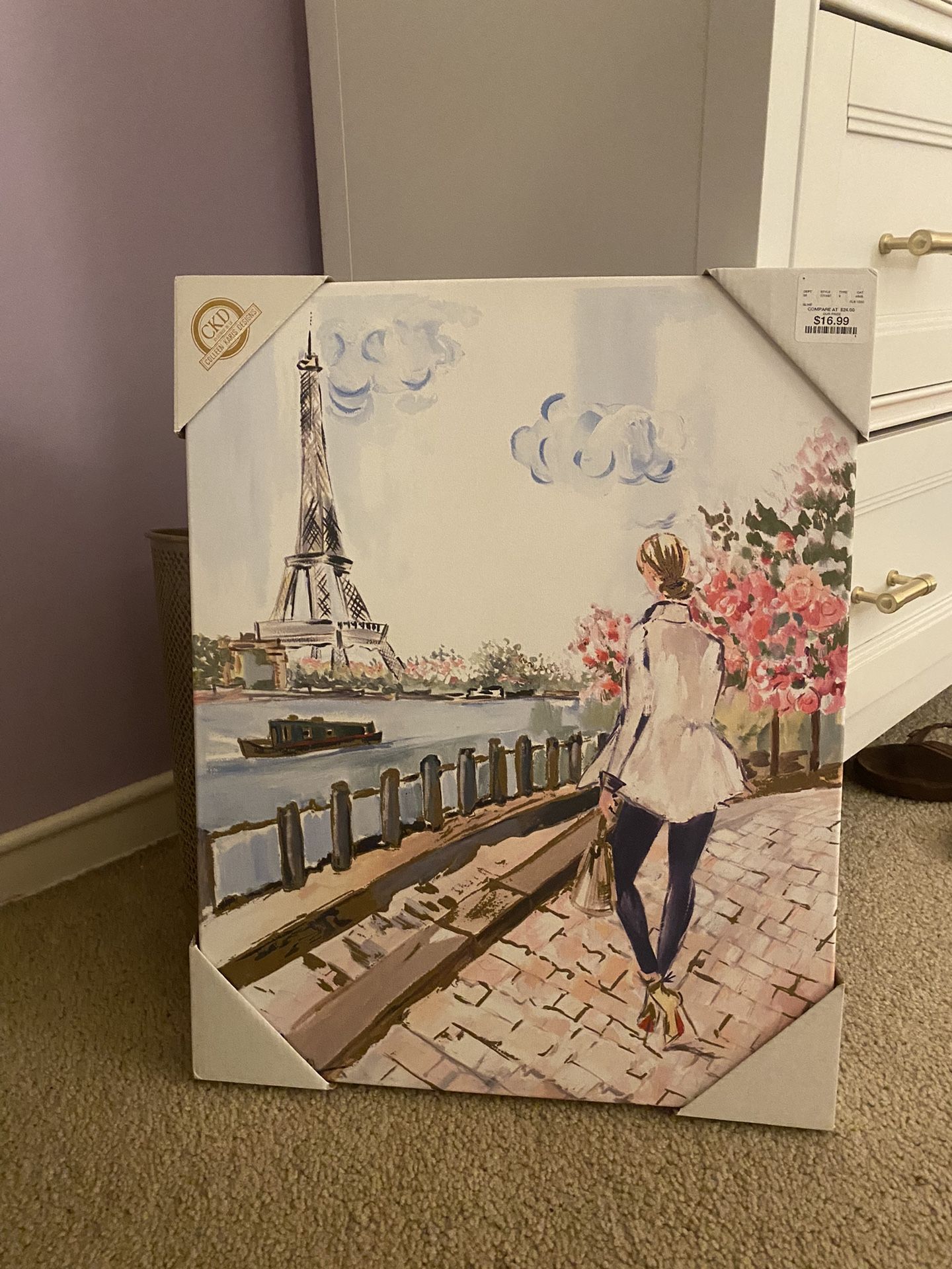 Colleen Karis Designs canvas wall art painting of a fashionable girl strolling through Paris! Purchased from Home Goods — brand new & ready to be hung!