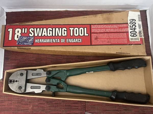 For securing ferrules and stops onto wire rope or cable. Use on rope sized 1/8 - 3/16". In excellent, LIKE NEW, condition with original box. Sizes are 1/16", 3/32", 1/8", 3/16"
