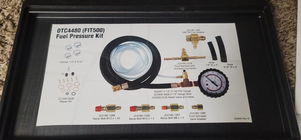Used only once just sits in my garage. Great fuel pressure kit had fitting that i needed when I used it