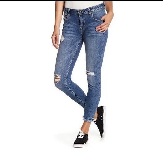 In excellent condition nice blue color lightly distressed skinny jeans Waist is 25 inches Length is 26 inches #22