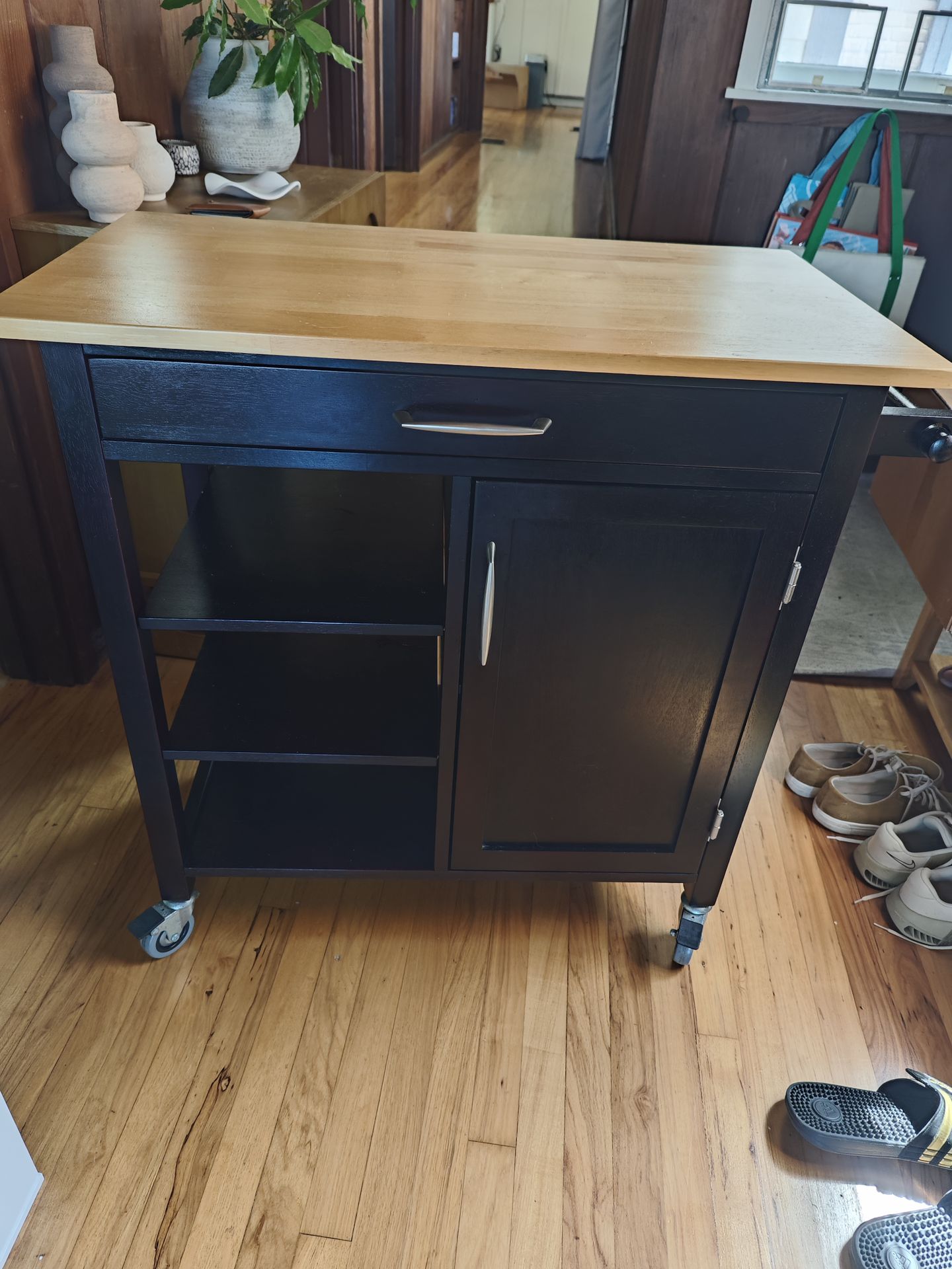 New retail $170, selling gently used for $40 due to redecorating. Very nice and functional cart with tons of storage and four swivel casters, two of them with locking mechanisms. Original product details here: https://offerup.com/redirect/?o=aHR0cHM6Ly9hLmNvL2QvMGF2OGpGMzM=